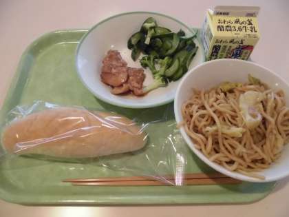 焼きそばは、給食の人気メニューです。生徒たちは、久しぶりの焼きそばをおいしそうに食べていました。