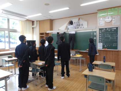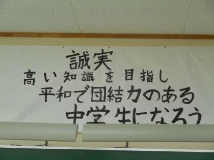 先週から、クラス全員で考えてきた「学級目標」が完成しました。今日は、他学年の先生に協力してもらい、黒板上部の壁面に掲げることができました。1年間を通して、学級目標を意識した学校生活を心がけます。