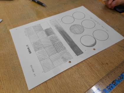 本日の学習課題は、「鉛筆の使い方に慣れよう」です。色の濃淡に気を配りながら、ワークシートに鉛筆を使い、いろいろな線や点で模様を描きます。