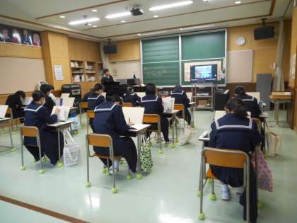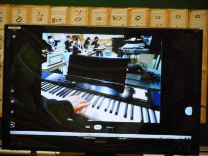 本日の授業は、「音階と調(長調)について」です。長調の音階は、半音と全音の組合わせであることを、鍵盤を弾くことで確認します。