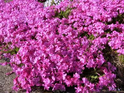 清々しい陽気です。学校正面にあるシバザクラが見頃です。