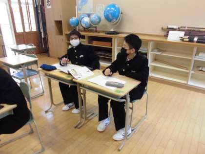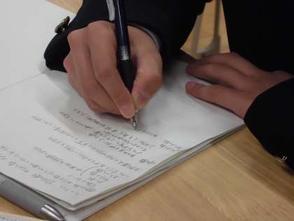 仏教、キリスト教、イスラム教の誕生について学習しています。ノートを書くときのペンの持ち方が美しかったです。
