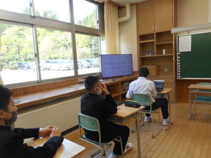 本日の授業は、「減法」です。+5を引くことは、−5を加えることと同じであることを確認した上で、減法は加法に置き換えて計算できることを学習します。スクリーンを見ながら、全員で声を合わせ、答え合うこともできました。