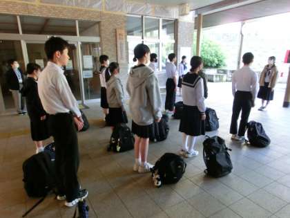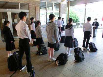 3年生は、全員元気に集合しました。予定通りに出発式を行い、意気揚々と学校を後にしました。