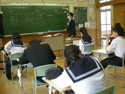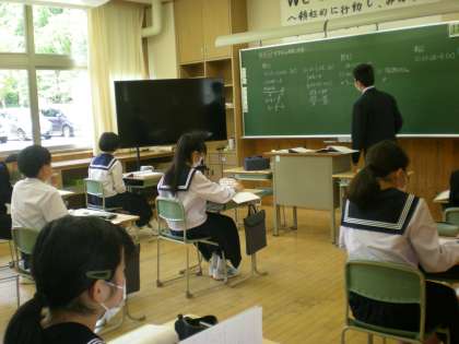 本日の授業は、「文字式の利用」でした。等式にある文字について、解く練習問題をくり返します。生徒は、1年で履修した方程式と同様、等式の性質を利用して解を求めました。