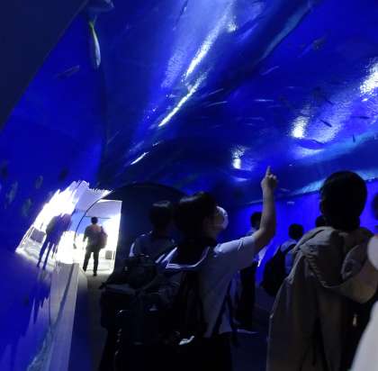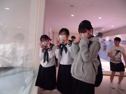 修学旅行初日の見学地は、「人と防災未来センター」と海遊館でした。阪神淡路大震災の被災体験を聞いて、生徒たちは、自然の恐ろしさと防災の大切さを知りました。海遊館では、珍しい魚や土産物の買い物を楽しんでいました。