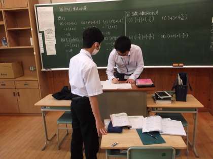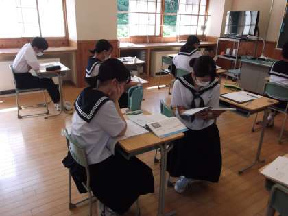 1年生は、数学「乗法の計算」、2年生は、保健体育「50m走」、3年生は国語「論語の暗唱」の授業でした。今日も暑くなりそうですが、生徒たちは意欲的に取り組んでいました。