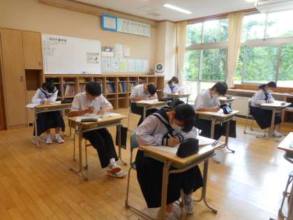 本日の授業では、予告されていた単元テストがありました。授業中に採点されて、返却されました。生徒は、自分の弱点を見直し、今後の学習につなげていました。