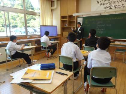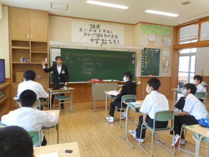 本日の学習は、Unit2 Our New Teacherです。新出単語として学習する“a”と“an”の使い方の違いについて、学習しました。生徒は、母音で始まる英単語を思い出していました。1年生は、授業で取り組む英単語チェックに、集中して取り組むようになってきています。