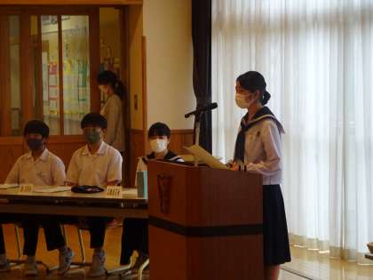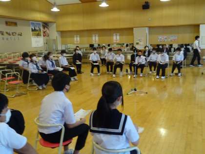 本日5限に、生徒総会を行いました。先週の学級討議で出た質問に、執行部、委員長が答える形で議事を進めました。執行部、各委員会の今期の活動について理解を深める機会にすることができました。