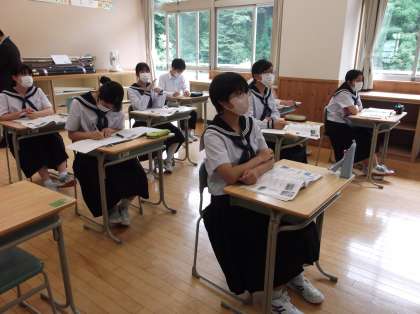 資本主義諸国と社会主義諸国との対立について学習しています。生徒はノートを丁寧にまとめています。