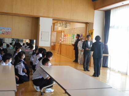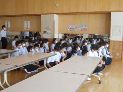 本日4限に、小中合同避難訓練がありました。土砂災害警戒情報が発令された想定で、訓練が実施されました。中学生は、ランチルームへ集合して人員点呼等で安全が確認された後、体育館で、NHK for schoolにある「土砂災害から命を守ろう」の動画を視聴しました。視聴した後、生徒は教室に戻り、本日の自己の行動を振り返って、反省等を記入しました。