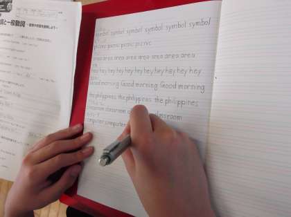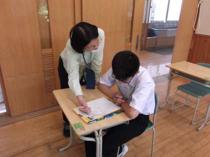 be動詞と一般動詞の使い分けについて復習しています。一人一人個別に指導しています。
