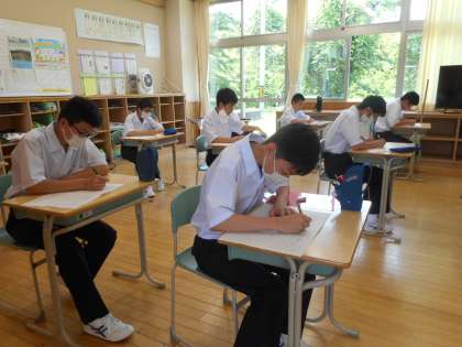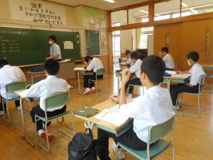 授業開始時に、正負の数で四則の混じった計算の確認テストがありました。