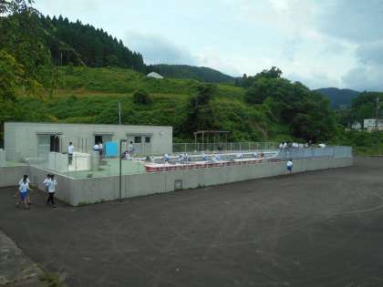 用務員がここ最近連日プール清掃をしてきたことと、小学校のPTA活動として、先日の授業参観の午後に清掃してくださったことで、きれいになりました。本当にありがとうございました。今日活動した児童生徒も率先して働く姿が見られ、頼もしい限りでした。