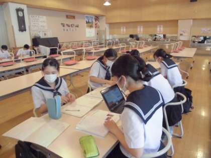 本日放課後に、山田中学力向上アカデミー、2回目を開きました。バスの下校時刻に合わせた、放課後のわずかな時間ですが、生徒たちは、自主的に集まって勉強を始めました。一人で集中して問題を解く生徒や、分からないところを友達に聞く生徒等、一生懸命取り組んでいる姿が見られました。