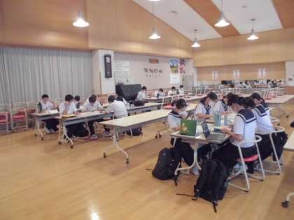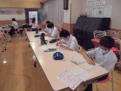 今日も放課後に、山田中学力向上アカデミーを開きました。1、2回目よりも多くの生徒たちが集まり、それぞれ勉強していました。中には、アカデミーのときに教えてほしいと、教科の先生に事前にお願いしていた生徒もいました。生徒の「分かりたい、何とか理解したい」気持ちがとても伝わった時間でした。