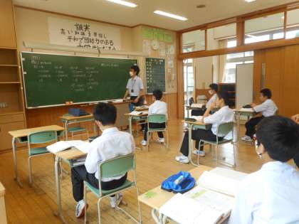 本日の学習は、「代入と式の値」です。式中の2つの文字、X、Yを数仁置き換えて、値を求めることを学習します。代入する数が、負の数であるときは、特に符号に注意を払います。学習した「代入」法が、期末評価の範囲から外れたことに、理解できた生徒からは残念がる声が聞かれました。