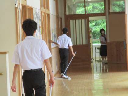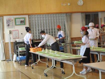 清掃班は、各掃除場所に分かれて、担当する所を丁寧に掃除しました。給食準備班は、てきぱきと全校分の給食を配膳しました。