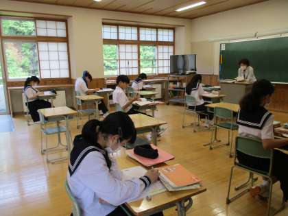 1年生は英語、2年生は国語、3年生は数学の授業に取り組んでいました。来週から、期末評価が始まります。生徒の真剣に学ぶ姿勢が、背中から伝わりました。