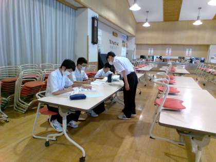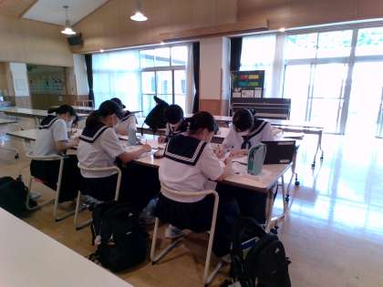 今日は、1学期期末評価前最後の山田中学力向上アカデミー開催でした。今日も多くの生徒が集まり、課題に取り組んだり教え合ったりしていました。共に学び合う雰囲気も、初日から更によくなっていると感じられました。