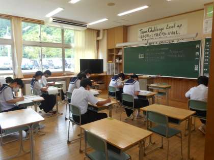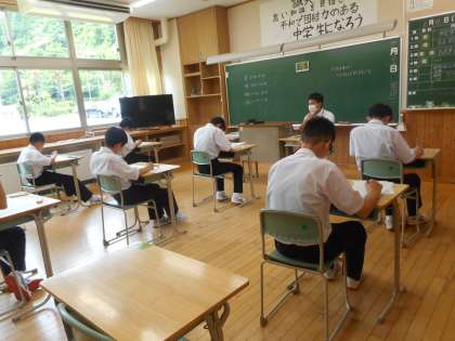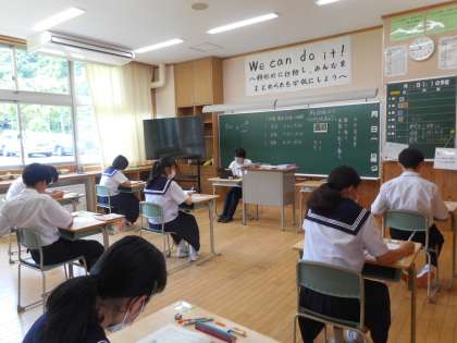 期末評価2日目です。どの学年の生徒も、今までの学習成果を発揮しようと、集中して取り組んでいます。