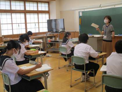 今日は、6月最終日です。1年生は数学「一次式の計算」、2年生は社会「社会の変化と幕府の対策」、3年生は国語「俳句を作ってみよう」のそれぞれ学習に取り組んでいます。