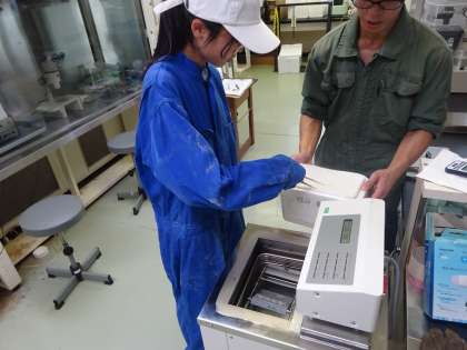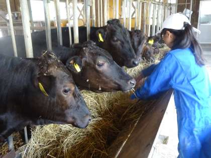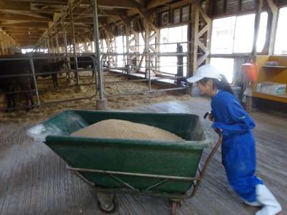 丘の夢牧場での活動の様子です。取り出した受精卵を凍結保存する様子を見学しました。その後、肉牛に牧草や飼料を与えたり、飼料をタンクから取り出して運んだりしました。活動に積極的に取り組んでいました。