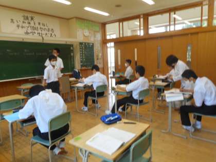本日の学習は、「1次式の数の乗法」です。2(X+3)の考え方について、長方形の面積の図を利用して、理解を深めました。加減法で苦戦した生徒から、「乗法は大丈夫」の声が聞かれました。