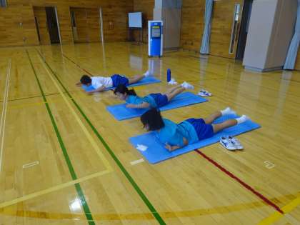 本日は、陸上競技部と、バレーボール部が部活動を行いました。陸上競技部は、筋力トレーニングやランニング等に取り組みました。バレーボール部は、サーブをレシーブしてから、相手のコートに返球するまでの動作を繰り返し練習しました。