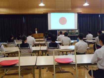 團校長先生から、生徒に向け、2学期に予定されている行事を通して、主体的に取り組む学校を目指すことを話されました。真剣に聞く生徒の姿から、学校生活をよりよいものにする意欲と決意が感じられました。