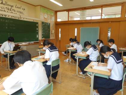 3年生は、本日2限目の数学を最後に、今回の5教科の校内学力調査を終えます。時間配分に気を配りながら、最後まで諦めず、テストに向き合うことができました。
