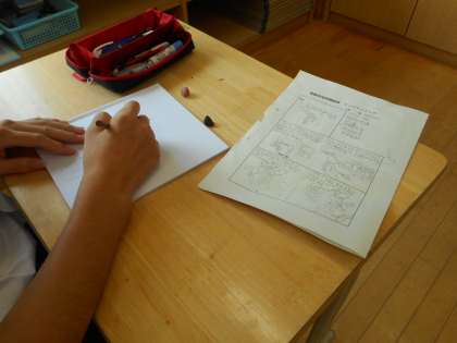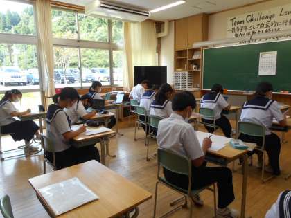 3年生は、授業で10月に山田保育所へ出向き、幼児と触れ合う学習があります。本日の学習課題は、当日持参する絵本の下書きを完成させることです。幼児が喜ぶ絵本を作ろうと集中して取り組んでいました。