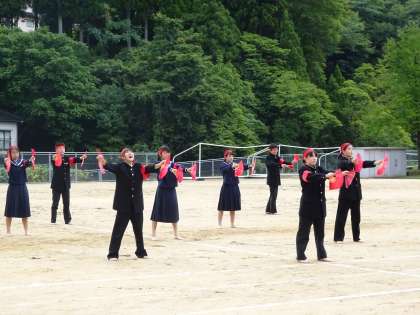 6限は、応援合戦のリハーサルを行いました。本番さながら、学生服の衣装を着て演技しました。演技の内容は、どうぞ、本番をお楽しみください。