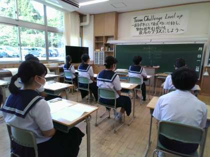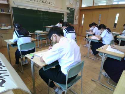 今日から2日間、3年生は5教科の校内学力調査に臨んでいます。学習に取り組んだ成果を試す学力調査です。生徒たちは緊張しながらも真剣に取り組んでいました。