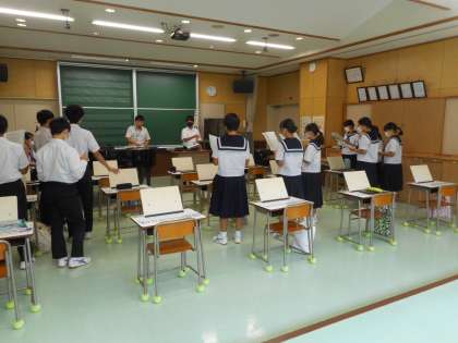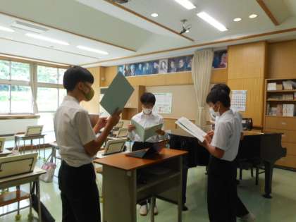 学力調査後の3限は、音楽でした。前回同様、パートに分かれて練習し、音の確認をしました。歌の練習はまだ始まったばかりですが、全校で素敵な合唱にしたい、という思いは、3年生皆一緒であることが感じ取れました。