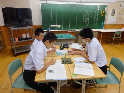 1学年の国語の授業の様子です。「星の花が降るころに」の学習で先生が提示した課題について、班でそれぞれの考えを共有しました。