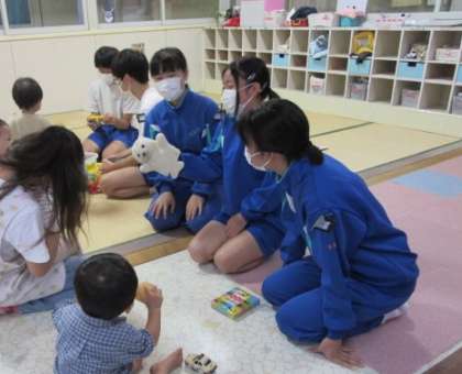 3年生は2、3限に山田保育所で「幼児との触れ合い体験」を行いました。自分から積極的に幼児と関わり、楽しい時間を過ごしました。