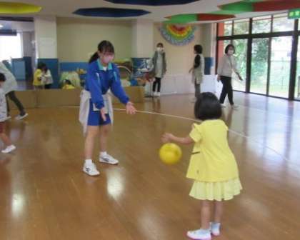 最後に交流会を行いました。中学生はバレーボール部の様子、保育所の子供たちからは、かわいいよさこいダンスを披露していただきました。