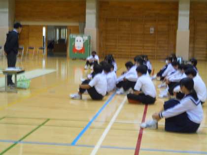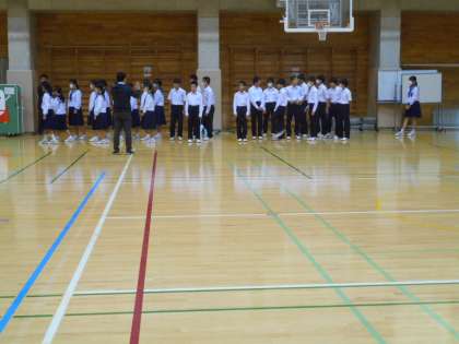 明日は、小・中合同学習発表会の校内発表会です。体育館で、音量や隊形、入退場等を重点的に練習しました。
