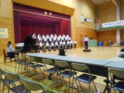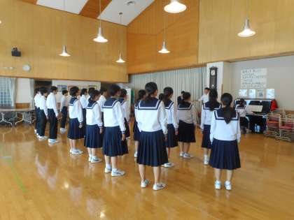 本日は、小中学習発表会予行練習です。中学生の出番の前に、ランチルームで声出しをしました。生徒の意気込みが伝わってきます。