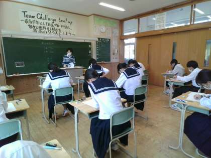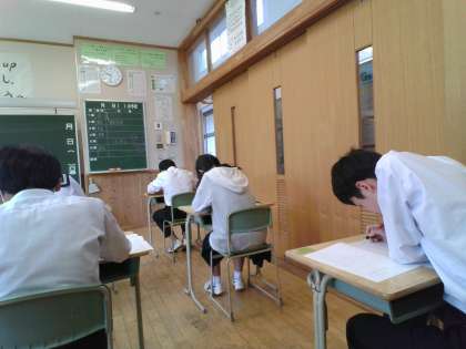 本日、3年生は校内学力調査の2日目です。1限英語、2限数学に取り組みます。生徒全員が必死に取り組んでいます。