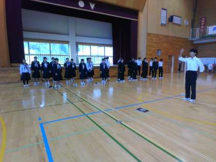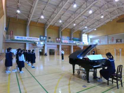明日の山田地域文化祭に向けて、全校で合唱練習を行いました。