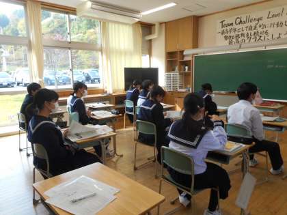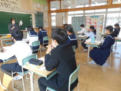 授業開始時に、再来週に予定されている期末評価の範囲と提出する家庭科ファイルに綴るワークシートの枚数を確認しました。