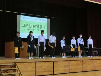 「山田快眠!よい睡眠について考えよう」をテーマに、学校保健委員会を実施しました。富山大学名誉教授 神川 康子先生に講演をいただきました。睡眠習慣の重要性について、児童・生徒、保護者ともに考えを深めました。