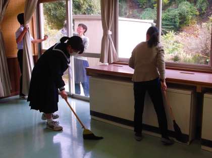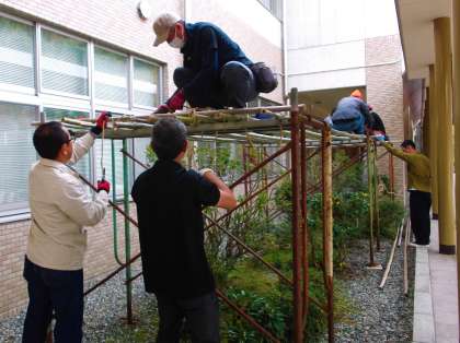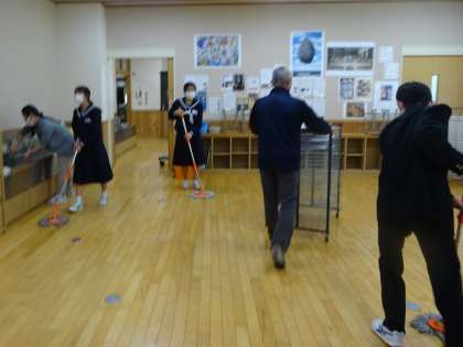 学校保健委員会の後は、PTA親子環境整備を行いました。たくさんの保護者の方々に参加していただき、植木の雪囲い、特別教室内外の大掃除を終えることができました。これで、冬を迎えられそうです。本当にありがとうございました。