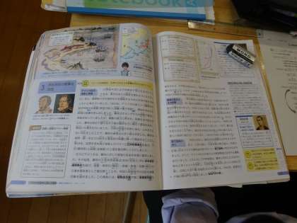 社会科の授業の様子です。江戸時代末期、開国によって日本と諸外国との間に貿易が拡大したことを学びました。