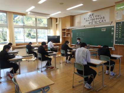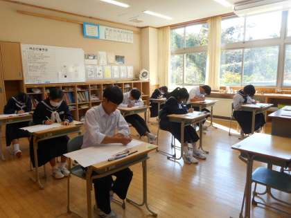 富山県中学校教育研究会学力調査2日目です。1・2限で2教科を受け、3限から通常の授業です。どの学年の生徒も、真剣にテストに向き合いました。