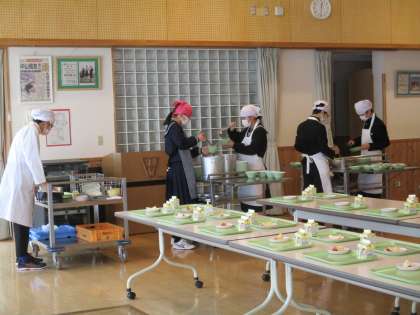 レバーは、貧血を防いでくれる鉄分が多く含まれています。レバーの他に、豚もも肉、たまねぎ等がたっぷり入って、生姜とにんにく、醤油の味付けで、ごはんとよく合います。給食をもりもり食べて、午後からの授業も頑張ります。