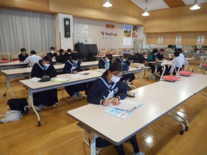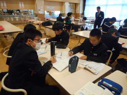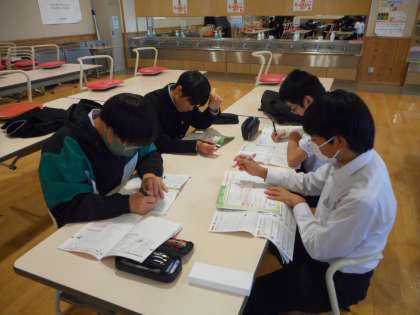 明日からの期末評価に向けて、放課後ランチルームを開放して山田中学力向上アカデミーを実施しました。学習課題を主体的に見付け自学・自習をし、分からないところは、先生や友達に聞いたり、教え合ったりしています。